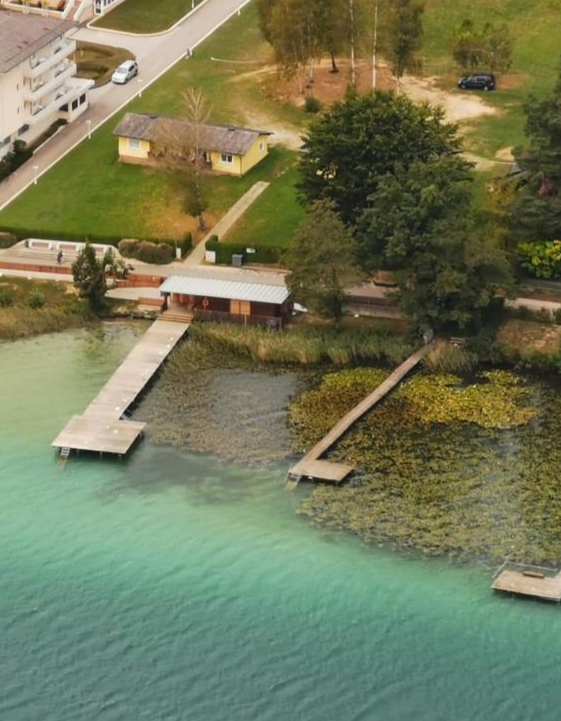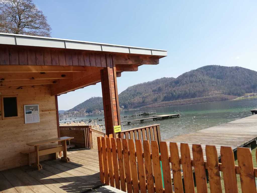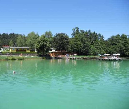 Der Klopeiner See (Fläche: 110 ha, max. Tiefe: 48m, Länge: 1,8km, Breite: 800m) ist mit über 110 Hektar Wasserfläche der größte natürliche See des Bezirkes Völkermarkt und liegt eingebettet zw. hügeligen Wäldern inmitten des malerischen Jauntals. Durch die Ringkanalisation und Tiefenwasserableitung weist der See nahezu Trinkwasserqualität auf. Er zählt mit bis zu 28 Grad Wassertemperatur zu den wärmsten Badesen Österreichs.