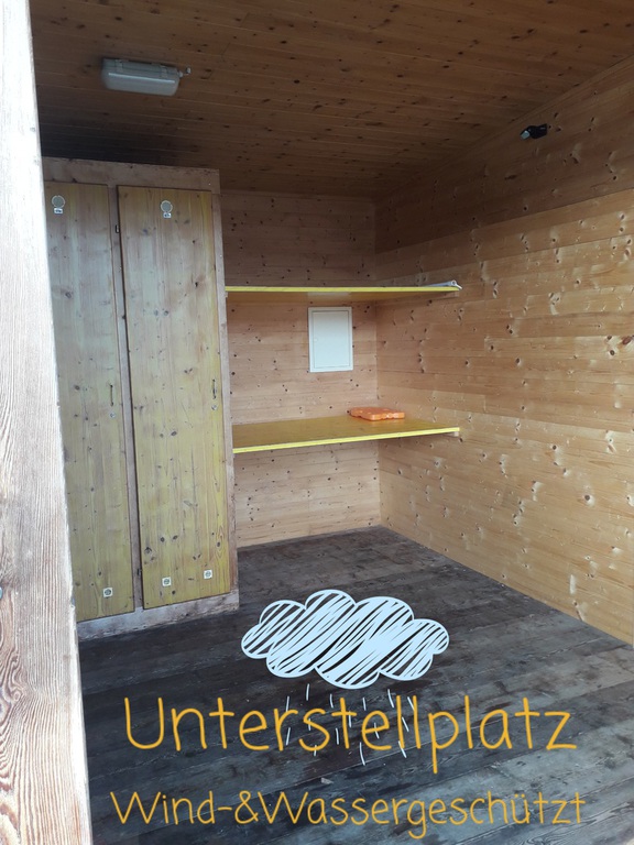 A) Übernachten Sie auf Ihren mitgebrachten Fischerliegen in dem überdachten wind- und regengeschützten Unterstellplatz am See.